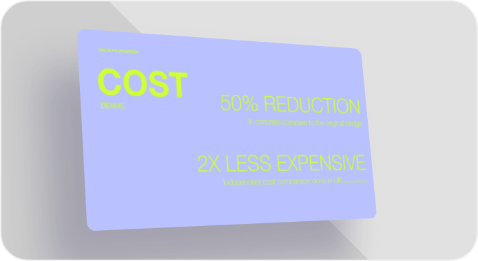 VALUE PROPOSITION COST 50% REDUCTION BEAMS In concrete compare to the original bridge 2X LESS EXPENSIVE Independent cost comparison done in UK (SOURCE CORE FIVE)