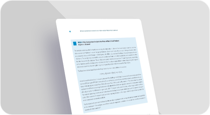 48 REDUCING MARKET DISTORTIONS FOR A MORE PROSPEROUS UKRAINE BOX 3 Price Comparison Analysis: Are Prices of Basic Food Products Higher in Ukraine? n The analysis assessing whether food prices are signi昀椀cantly higher in Ukraine than in comparator countries uses two data sources: (a) “Numbeo” – an online global database of user contributed data on cost of living with information on consumer prices, and (b) Economist Intelligence Unit (EIU) – a survey-based database of consumer prices for over 160 items. The sample was restricted to products available in Ukraine and where yearly data were available in either the Numbeo or the EIU database. The sample covers yearly information on prices of 14 and 20 products, respectively, in the Numbeo and EIU databases from 2010 to 2017. Both databases apply di昀昀erent methodologies in gathering price data across countries, thus strengthening the comparability of price information used in this analysis. The baseline empirical speci昀椀cation for the price comparison analysis follows the equation: ln(Price ) = β Ukraine + β ln(Z ) + η + δ + ε it 1 2 it i t ijt where for each food product i in country j in year t; Price is the price (US$/kg), X is a vector of cost and demand shifters such as GDP per capita PPP (2011 international $), cost of imports, and tari昀昀 rates, Ukraine is a dummy variable for observa- tions in Ukraine, η are product 昀椀xed e昀昀ects, δ are year 昀椀xed e昀昀ects, and e is the error term. The Ukraine dummy variable captures the di昀昀erence in average food prices in Ukraine relative to the average prices across the comparator countries after adjusting for the di昀昀erences in per capita GDP PPP, import costs, customs duties, product types and time e昀昀ects. The variable capturing costs to import (taken from the Trading Across Border dataset) accounts for domestic transport costs. Other sources of transport costs (oversees shipping) depend on the origin and destination of each product, for which data is not consistently available. The food products were selected based on their relative importance to the average Ukrainian consumer and availability in the databases67. The analysis uses di昀昀erent sets of comparator jurisdictions to account for potential distortions in markets of other countries68. 67 The analysis used the following 14 products from the Numbeo database: Apples (1kg), Banana (1kg), Beef Round (1kg or Equivalent Back Leg Red Meat), Chicken Breasts (Boneless, Skinless, (1kg), Eggs (regular, 12), Lettuce (1 head), Loaf of Fresh White Bread (500g), Local Cheese (1kg), Milk (regular, 1 liter), Onion (1kg), Oranges (1kg), Potato (1kg), Rice (white, 1kg) and Tomato (1kg), while the following 20 products from the EIU database we analyzed: Apples (1 kg), Bananas (1 kg), Beef (昀椀let mignon, ground or minced, roast, steak, stewing, 1 kg), Butter (500 g), Chicken (fresh, frozen, 1 kg), Eggs (12), Flour (white, 1 kg), Fresh 昀椀sh (1 kg), Lettuce (1 head), Milk (pasteurized, 1 liter), Mushrooms (1 kg), Onions (1 kg), Oranges (1 kg), Peanut or corn oil (1 liter), Pork: (chops, loin, 1 kg), Potatoes (2 kg), Sugar (white, 1 kg), Tomatoes (1 kg), White bread (1 kg) and White rice (1 kg). 68 The comparator countries with available data in the Numbeo database include 35 OECD countries – Australia, Austria, Belgium, Canada, Chile, Czech Republic, Denmark, Estonia, Finland, France, Germany, Greece, Hungary, Iceland, Ireland, Israel, Italy, Japan, South Korea, Latvia, Luxembourg, Mexico, The Netherlands, New Zealand, Norway, Poland, Portugal, Slovak Republic, Slovenia, Spain, Sweden, Switzerland, Turkey, United Kingdom, and United States – and 7 additional selected regional – Bulgaria, Croatia, Georgia, Kazakhstan, Lithuania, Moldova, and Romania. The comparator countries with available data in the EIU database include 32 OECD countries – Australia, Austria, Belgium, Canada, Chile, Czech Republic, Denmark, Finland, France, Germany, Greece, Hungary, Iceland, Ireland, Israel, Italy, Japan, South Korea, Luxembourg, Mexico, The Netherlands, New Zealand, Norway, Poland, Portugal, Slovak Republic, Spain, Sweden, Switzerland, Turkey, United Kingdom, and United States and 3 additional selected regional – Bulgaria, Kazakhstan, and Romania.