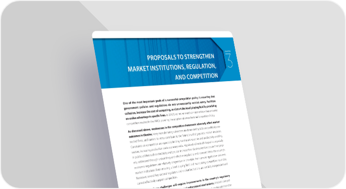 PROPOSALS TO STRENGTHEN CHAPTER MARKET INSTITUTIONS, REGULATION, 3 AND COMPETITION One of the most important goals of a successful competition policy is ensuring that government policies and regulations do not unnecessarily restrict entry, facilitate collusion, increase the cost of competing, or distort the level playing 昀椀eld by providing an undue advantage to speci昀椀c 昀椀rms. In 2016, Ukraine’s renewed commitment to enhance market competition resulted in the AMCU planning the adoption of a new National Competition Policy. As discussed above, weaknesses in the competition framework adversely a昀昀ect market outcomes in Ukraine. Many manufacturing subsectors are dominated by SOEs and politically con- nected 昀椀rms, and barriers to entry contribute to the formation of oligopolistic market structures. Constraints on competition are especially binding in network industries and productivity-enabling sectors, increasing production costs economy-wide. High levels of vertical integration, especially in public utilities such as electricity and gas, can increase the risk of market foreclosure if not prop- erly addressed through unbundling and e昀昀ective regulatory enforcement. While the country’s economic regulations are relatively progressive in principle, their uneven application prevents market institutions from ensuring a level playing 昀椀eld and maintaining competitive neutrality. Moreover, several key sectoral regulators and market institutions are not fully independent and cannot e昀昀ectively support competition. Addressing these challenges will require improvements in the country’s regulatory framework, institutional arrangements, and enforcement mechanisms. A holistic competi- tion policy must go beyond antitrust enforcement to: (i) ensure a competitively neutral administrative environment that minimizes the policy-based advantages of SOEs and politically connected 昀椀rms; (ii) improve the predictability, consistency, and transparency of the regulatory framework, both in principle and in application; and (iii) support the development of robust, independent market insti- tutions. Speci昀椀c recommendations for strengthening Ukraine’s competition policies and institutional arrangements are presented in Figure 32 and Table 3, below. 37