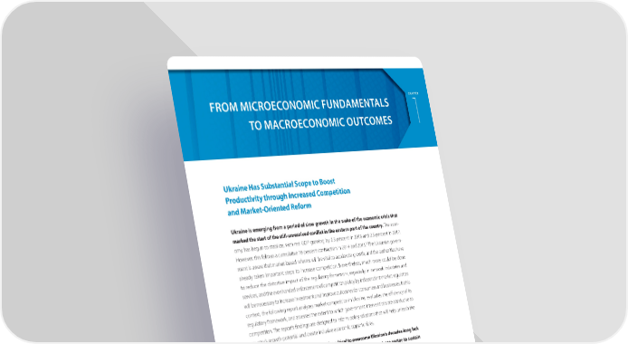 CHAPTER FROM MICROECONOMIC FUNDAMENTALS TO MACROECONOMIC OUTCOMES 1 Ukraine Has Substantial Scope to Boost Productivity through increased Competition and Market-Oriented Reform Ukraine is emerging from a period of slow growth in the wake of the economic crisis that marked the start of the still-unresolved con昀氀ict in the eastern part of the country. The econ- omy has begun to stabilize, with real GDP growing by 2.3 percent in 2016 and 2.5 percent in 2017. 3 However, this follows a cumulative 16 percent contraction in 2014 and 2015. The Ukrainian govern- ment is aware that market-based reforms will be vital to accelerate growth, and the authorities have already taken important steps to increase competition. Nevertheless, much more could be done to reduce the distortive impact of the regulatory framework, especially in network industries and services, and the evenhanded enforcement of competition policy by independent market regulators will be necessary to increase investment and improve outcomes for consumers and businesses. In this context, the following report analyzes market competition in Ukraine, evaluates the e昀케ciency of its regulatory framework, and assesses the extent to which government interventions are conducive to competition. The report’s 昀椀ndings are designed to inform policy solutions that will help unleash the country’s growth potential and create inclusive economic opportunities. Strengthening competition policy will be critical to overcome Ukraine’s decades-long lack of productivity growth and leverage the capacity of an e昀케cient private sector to sustain progress on social development by expanding access to a昀昀ordable, high-quality goods and services. Competition policy encompasses the laws, regulations, processes, and institutions neces- sary to ensure a level competitive playing 昀椀eld and address distortions that could reduce economic 4 welfare. A sound competition policy framework promotes economic growth and shared prosperity both by facilitating productivity growth within 昀椀rms and by enabling the e昀케cient reallocation of 5 resources to more-productive 昀椀rms and sectors. Productivity gains reduce prices and improve the quality of goods and services, bene昀椀tting consumers—including lower-income households. E昀昀ec- tive competition policies must consider the speci昀椀c features of di昀昀erent markets, and well-designed 3 World Bank Group (2018). Macro Poverty Outlook for Europe and Central Asia. Spring Meetings 2018. 4 See Motta, M. (2004). Competition policy: theory and practice. Cambridge University Press. 5 See Syverson, C. (2011). What Determines Productivity? Journal of Economic literature. 5