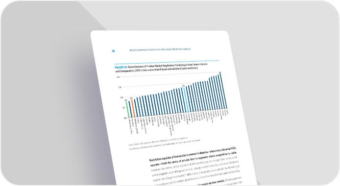 28 REDUCING MARKET DISTORTIONS FOR A MORE PROSPEROUS UKRAINE FIGURE 28 Restrictiveness of Product Market Regulations Pertaining to State Control, Ukraine and Comparators, 2018 (index scores from 0 [least restrictive]to 6 [most restrictive]) 4.0 3.0 57% 2.0 33% 33% 1.0 0.0 o y y ia y eru via aziltia as ica ica key ageoniaageP ador xict agua enia oa aine fr tinagypt ndia er er e La Chile emala aguav Br r r oland oliviaurChinaE unisiaI v Estv alvepublicM anama t epublicepublic C Uk omania JamaicaP cuadorB T gen T Hungar icarP olombiaarSlo R BulgarUruguaosta RE r El S N LithuaniaGuaC P hilippinesHondur C outh A A ak R P S op 5 A ech R v T OECD A z C Slo ominican R D Source: Markets and Competition OECD-WBG PMR indicators; 2018 PMR scores for Ukraine. Note: The top 5 performers are the Netherlands, the United Kingdom, the United States, Austria, and Denmark. Restrictive regulatory frameworks in network industries—where many Ukrainian SOEs operate—limit the entry of private firm in segments where competition is viable. Ukrainian law defines certain segments of the electricity, gas, and transportation sectors as nat- ural monopolies, while the postal services, railways, alcohol production, and water distribution 50 markets are all legal monopolies. While natural monopolies can, in principle, be efficient, legal monopolies may restrict entry in markets where competition would be both viable and beneficial. The entry of new 昀椀rms is explicitly capped in several services markets. Bilateral agreements impose quantitative limits on the entry of foreign 昀椀rms in the road passenger transportation sub- sector, and the participation of foreign investors in the 昀椀xed-line telecom sector is limited. These caps ultimately reduce competitive pressure both in markets subject to regulatory restrictions and in substitute markets. 50 Ordinary letters weighing up to 50 grams and simple postcards are carried by Ukrposhta, which is designated as the national postal services provider under Art. 15 of the Law on Postal Services of 04.10.2001 #2759-III (http://zakon2.rada.gov.ua/laws/ show/2759-14). Passenger and freight railroad transport services are provided by Ukrzaliznytsia, which is designated as the national basic railroad service provider under Art. 4 and 9 of the Law on Railroad Transport (http://zakon2.rada.gov.ua/laws/ show/273/96-%D0%B2%D1%80) .Ethyl alcohol is produced by SOEs in line with Art. 2 of the Law on State Regulation of the Production and Sale of Ethyl, Cognac, and Fruit Alcohol, Alcoholic Beverages, and Tobacco Products (http://zakon3.rada.gov. ua/laws/show/481/95-%D0%B2%D1%80)