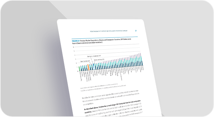 REDUCING MARKET DISTORTIONS FOR A MORE PROSPEROUS UKRAINE 27 FIGURE 27 Product Market Regulations, Ukraine and Comparator Countries, 2018 (index scores from 0 [least restrictive] to 6 [most restrictive]) 6 5 4 Barriers to Investment, 0.41 3 State Control, 0.87 Barriers to Entry, 0.26 2 1 0 y ia o y y as via eru tia ica ica key azil ageonia age aine t enia xicP adoraguaoa fr gypt ndiatina er er Chile r La oland v e r emala aguaur Br E China I oliviaunisia v Est epublicepublicvUk P omania M alv C t anamaepublicJamaicaT cuadorgenB T Hungar Bulgar R Slo olombia icar P osta Rar Urugua E r Lithuania C El SN Guaouth A C P hilippines Hondur A ak R S P op 5 A v ech R T z OECD A SloC ominican R D Source: Markets and Competition OECD-WBG PMR indicators. 2018 PMR scores for Ukraine. Notes: The top 5 performers are the Netherlands, the United Kingdom, the United States, Austria, and Denmark. that allow for state control over certain aspects of the economy or that establish barriers to compe- tition in network industries are high by international standards and may impose binding constraints on competition. As described above, Ukraine has a much larger SOE footprint than do most comparator countries. Ukraine’s PMR score for state control (2.62) is well above both the OECD average (1.72) vand the scores of neighboring countries such as Hungary (2.05) and the Slovak Republic (2.17) (Figure 28). SOE governance is the largest contributor to the restrictiveness associated with public ownership, and Ukraine’s PMR score in this area (4.5) signi昀椀cantly exceeds the OECD average (3.57).49 49 Higher scores indicate more restrictive policies and regulations.