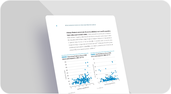 8 REDUCING MARKET DISTORTIONS FOR A MORE PROSPEROUS UKRAINE Although Ukraine is open to trade, the country could attract much more FDi, especially in 10 higher-value, export-oriented markets. While Ukraine performs relatively well on measures of 11 trade openness (Figure 4), it attracts less FDI than do many comparable countries (Figure 5). Before the crisis, annual net FDI in昀氀ows averaged 5 percent of Ukraine’s GDP, but in 2017 they reached just 2.1 percent, below the levels of the Czech Republic (4.3 percent), Croatia (3.8 percent), Latvia 12 (3.8 percent), Bulgaria (2.9 percent), and Romania (2.3 percent). The slow pace of the reform process, unaddressed macroeconomic vulnerabilities, and uncertainty surrounding the 2019 elections are among the key factors weakening investor con昀椀dence.13 FIGURE 4 International Trade as a Share of GDP, FIGURE 5 Net FDI In昀氀ows as a Share of GDP, Ukraine and Comparators, 2006–2017 (%) Ukraine and Comparators, 2006–2017 (%) 450 60 400 ) 50 350 GDP40 300 f o % 250 ( s 30 200 Ukraine inow t Trade (% of GDP)150 ne 20 , Ukraine DI 100 F 10 50 0 06 7 8 9 10 11 12 6 7 8 9 10 11 12 log GDP per capita (PPP 2011) log GDP per capita (PPP 2011) Source: WDI Dataset Source: WDI Dataset 10 These include high-value metal and agriculture products. 11 According to MIT’s Atlas Media for 2016, Ukraine’s top exports are seed oils (US$3.44 billion, 9.8 percent of total exports), wheat (US$2.37 billion, 6.7 percent), corn (US$2.26 billion, 6.4 percent), semi-昀椀nished iron (US$2.1 billion, 6.0 percent) and iron ore (US$1.92 billion, 5.5 percent) per the 1992 Harmonized System. The country’s top imports are re昀椀ned petroleum (US$3.3 billion, 8.7 percent of total imports), packaged medicaments (US$1.37 billion, 3.6 percent), cars (US$1.24 billion, 3.3 percent), coal briquettes (US$1.11 billion, 2.9 percent) and petroleum gas (US$964 million, 2.5 percent). For further information, see: https://atlas.media.mit.edu/en/pro昀椀le/country/ukr/ 12 Peer countries include Poland, Turkey, Lithuania, Romania, Moldova, Kazakhstan, Bulgaria, Estonia, Latvia, Croatia, Czech Republic, and Georgia. 13 World Bank Group (2018) “Macro Poverty Outlook for Europe and Central Asia.” Spring Meetings 2018.